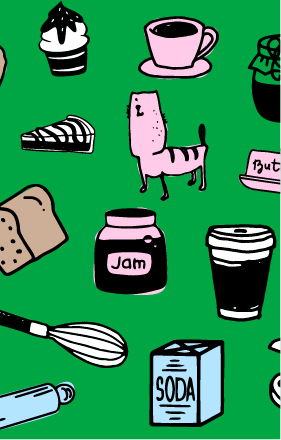 Visually, the dynamic identity comprises many parts – illustrated mascots, whimsical doodle-icons of cafe and bakery tools, spill-&-drip motifs that mimicked icing, froth, and drizzle— paired with drool-bait imagery, and a bank of remixed song lyrics with fun puns.